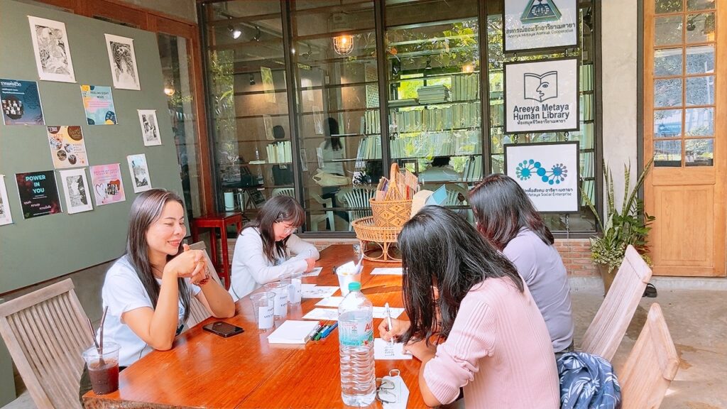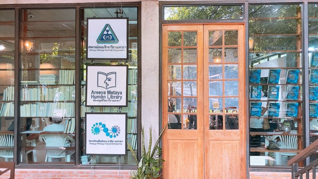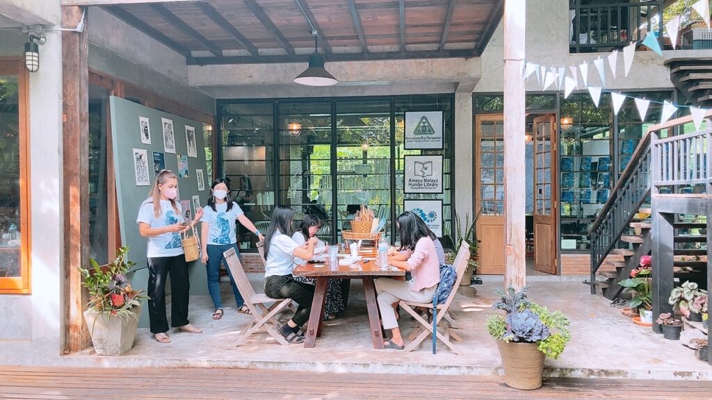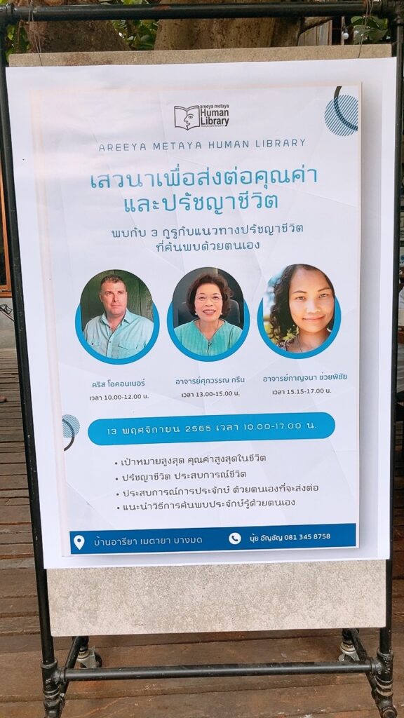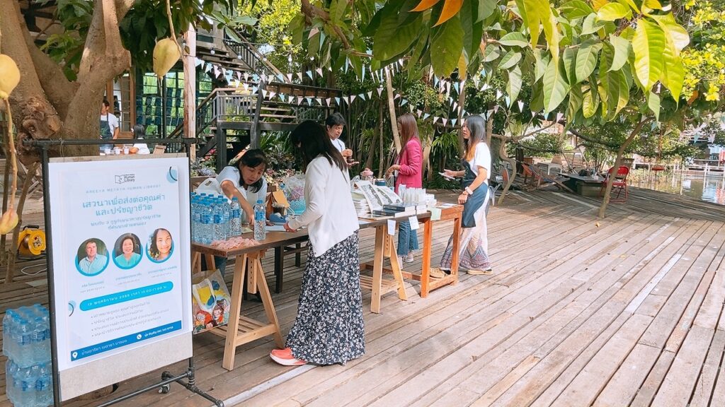 *ท่านสามารถเดินทางมาที่ ห้องสมุดมนุษย์อารียา เมตายา โดยจอดรถจุดปล่อยปลาวัดพุทธบูชา มีเรือข้ามฟาก
